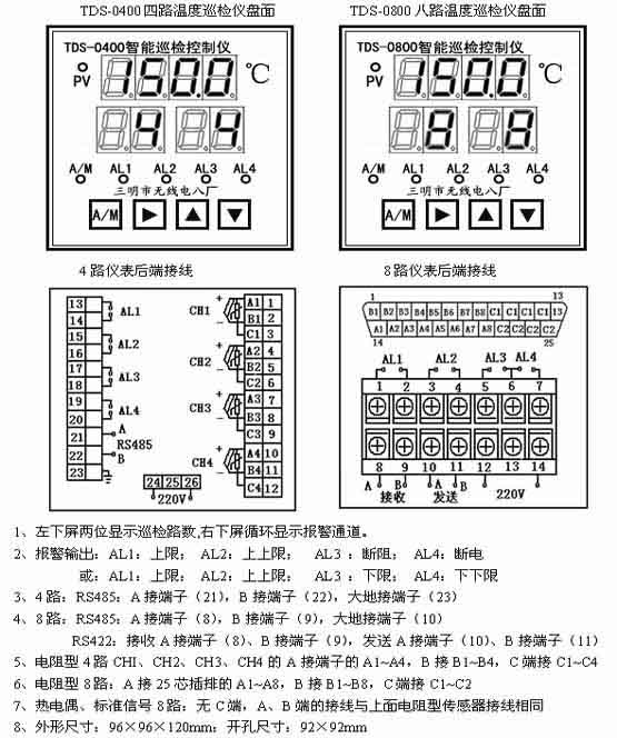 3.8、TDS-0400四路、TDS-0800八路數(shù)字溫度巡檢測(cè)控儀
