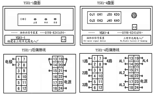 YSXl-1油積水信號裝置由電極裝置和集成發(fā)信電路兩部分組成。電極由不銹鋼材料精制,防銹性能,導(dǎo)電性能好,發(fā)信電子控制線路主要由集成電路組成,靈敏度高,維護(hù)方便。