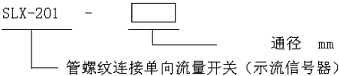 SLX-201型單向機(jī)械式示流信號器用于測量流經(jīng)管道的液體流動狀態(tài), 如:水、油、乙稀、乙二醇等對銅無腐蝕作用的液體。是一種新型的檢測裝置,廣泛用于水電站供水系統(tǒng)斷水保護(hù)。采用日本歐姆龍微動開關(guān),動作輕巧。 二、型號說明